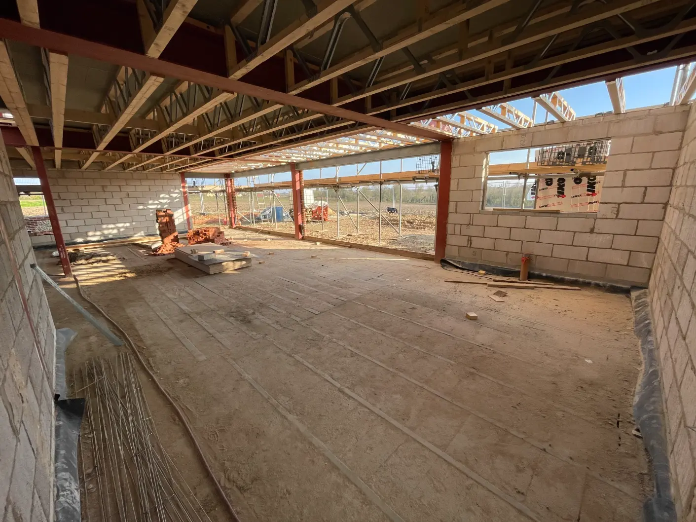 The open plan design called for a considerable amount of steel framing bolted to the footings to allow us to achieve a room downstairs 7,400mm wide by 13,700mm long.
