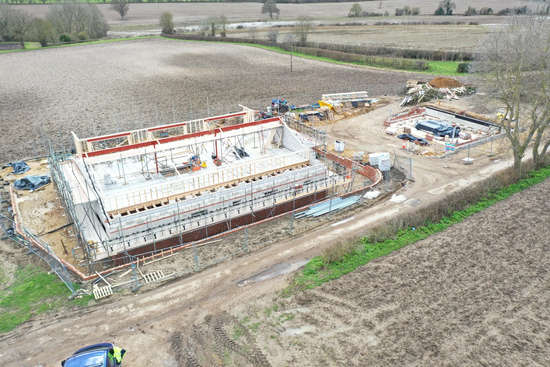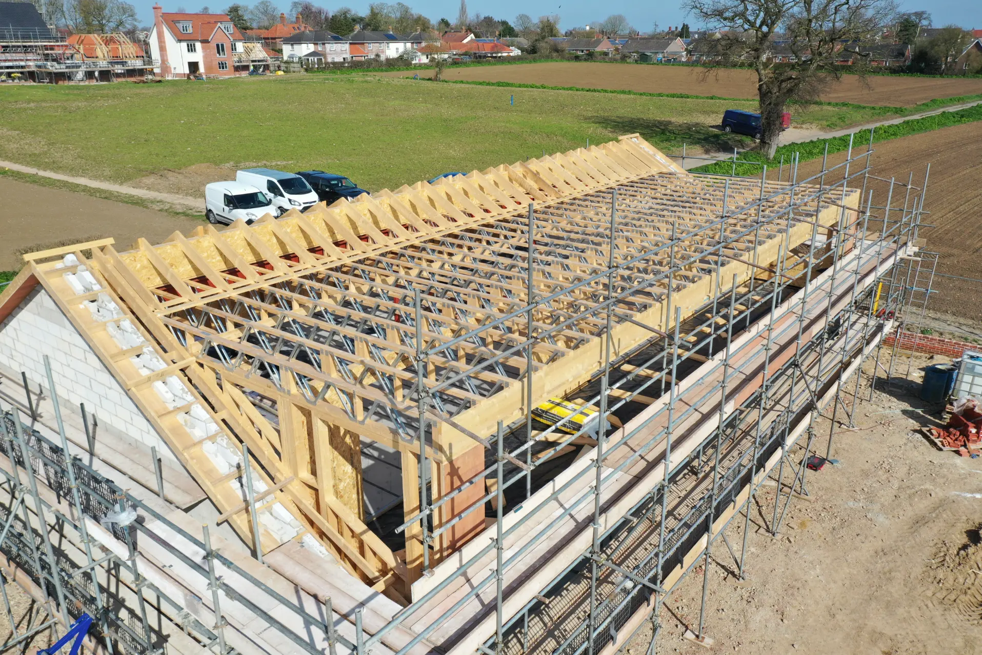 Manor Barn sits on a secluded lane outside of the picturesque village of Pulham Market in Norfolk. The land sits on a slight slope where we chose to excavate a considerable amount of soil to enable us to build a two-storey dwelling reflecting the original structure in line with planning guidance whilst keeping the new ridge height in line with the original.