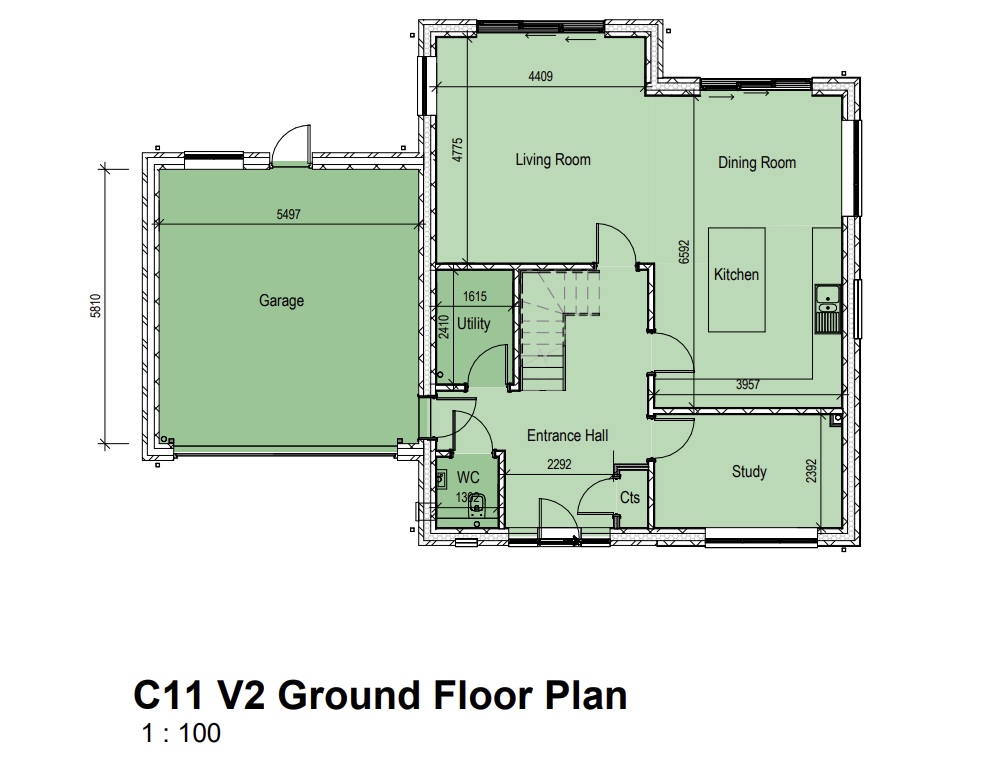 The ground floor is accessed via a welcoming entrance hall, creating a natural flow through to all principal living spaces. At the heart of the home is a spacious kitchen and dining area, thoughtfully designed for modern family living and entertaining, with a separate living room providing a generous and comfortable retreat. A dedicated study offers flexibility for home working or additional living space, while a utility room, WC, and integral garage add further practicality.